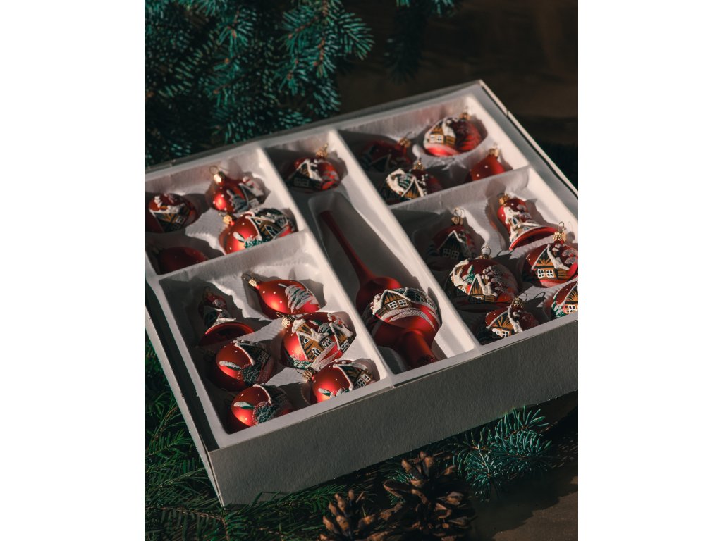 Sada 21+1 - Mat malovaný domeček - Červená